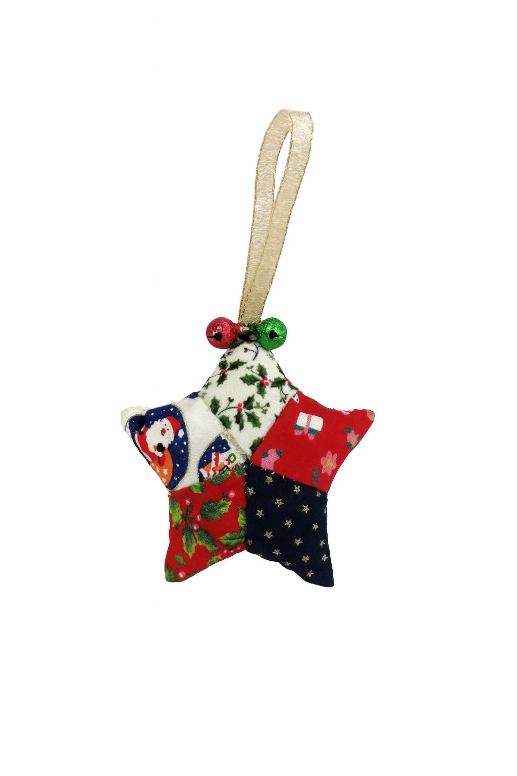 5枚の色とりどりの生地を丁寧に縫い合わせて、かわいらしい星の形に仕上げたパッチワークのオーナメントです。中にはふっくらとした綿が入っており、温かみのある魅力的なデザインが特徴です。鈴の音が優しく響き、子どもたちの笑顔を引き出すこと間違いなし!クリスマスの雰囲気を一層盛り上げるアイテムです。