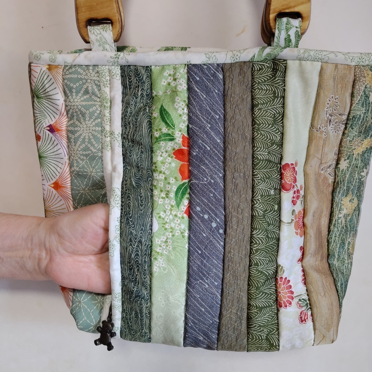 和布のキルトのバッグです