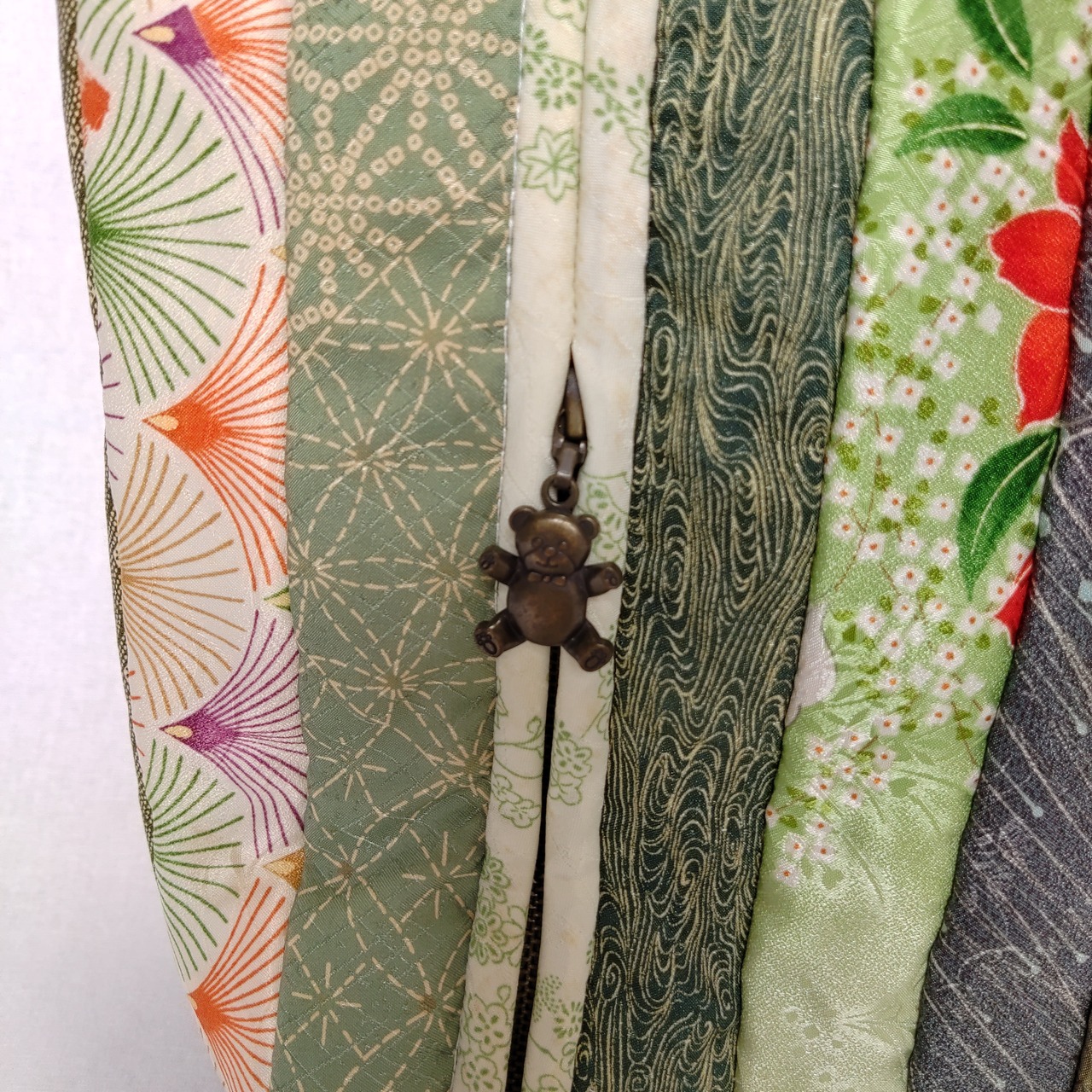着物の生地をたくさん集めて縫い合わせました