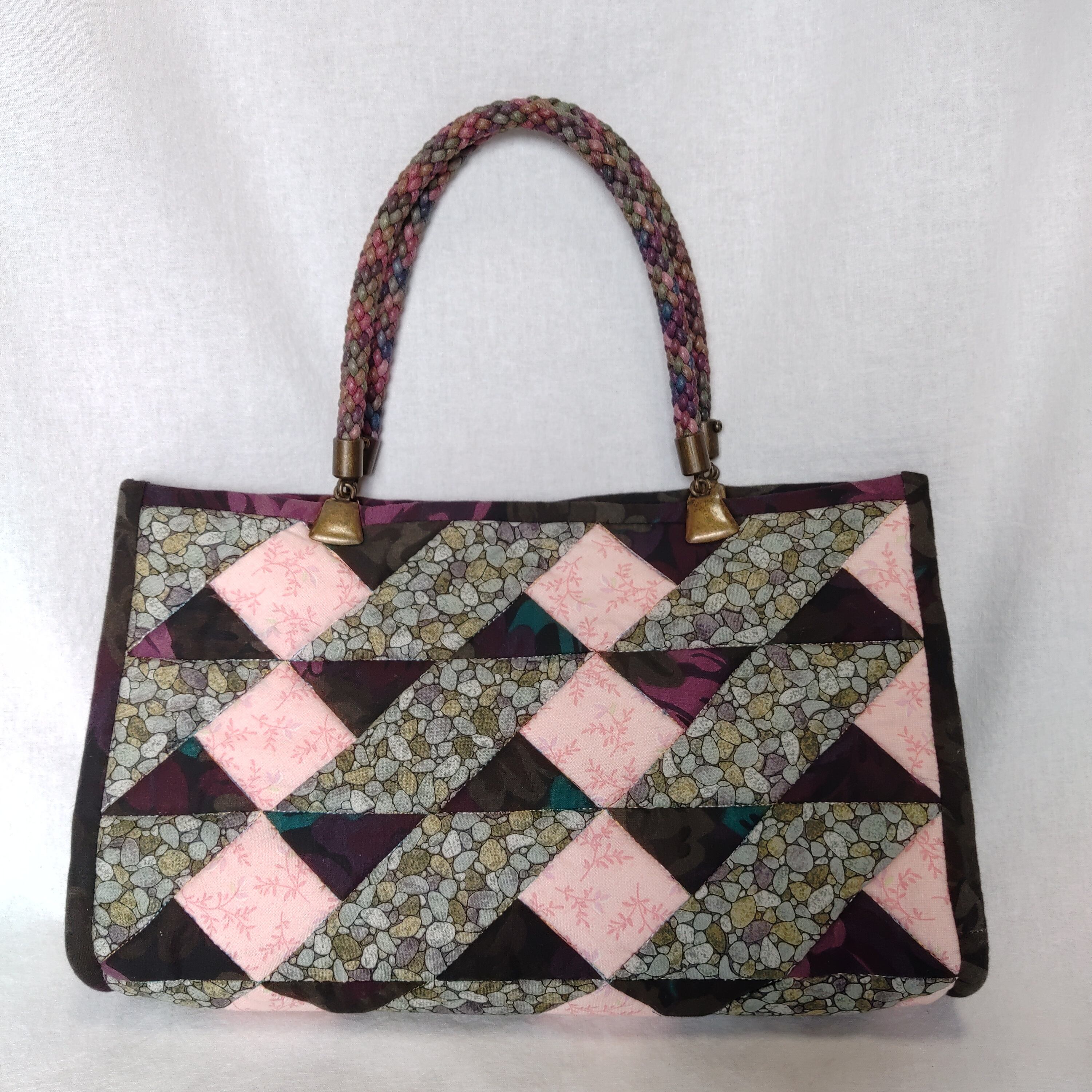このバッグはミシンで縫い合わせてキルトし、バッグに仕立てたものです